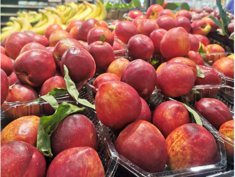 記者走訪本市一家家樂(lè)福門(mén)店,看到店里水果不僅種類齊全,而且價(jià)格親民,“ 安徽油桃剛上市不久,目前有70g和100g兩種規(guī)格, ” 一名銷售人員介紹。