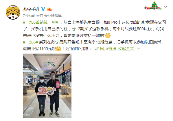 一加8系列斬獲蘇寧銷售銷量雙料冠軍