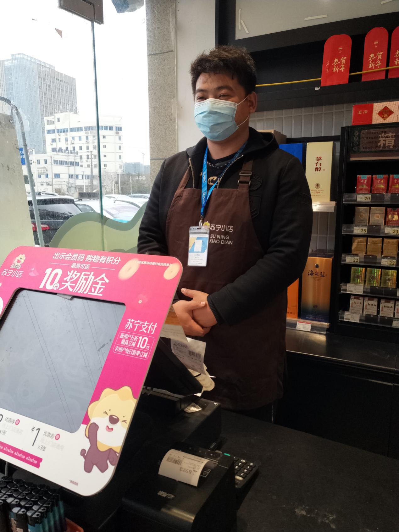 汪林林通過各種渠道,自掏腰包購買了兩批近4000個口罩,在他擔任店長的蘇寧小店鎮(zhèn)江凱旋國際店免費發(fā)放,解了不少周邊居民的燃眉之急。