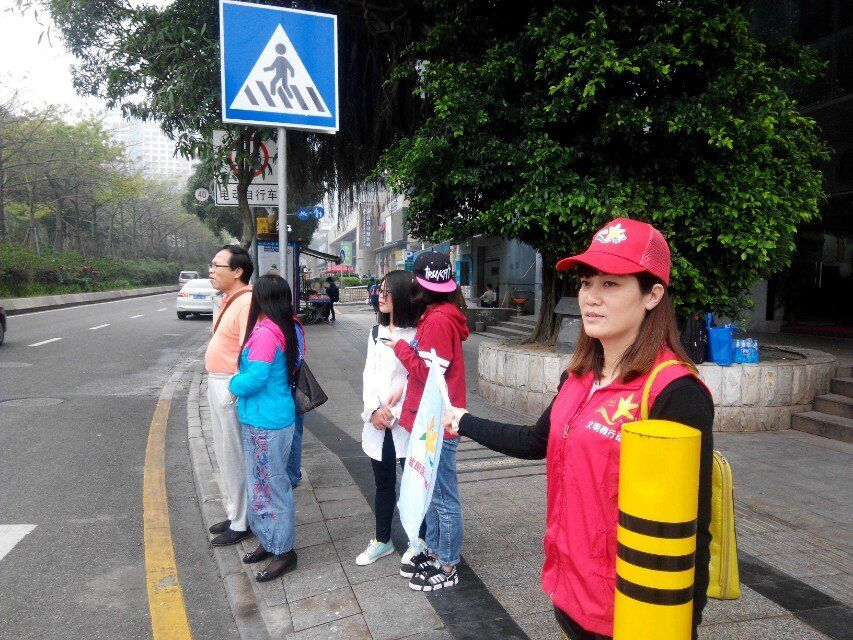 2013年3月,楊小英來(lái)到了深圳。對(duì)于深圳,她的第一印象是蓬勃發(fā)展的城市氣息。一天,當(dāng)她推著孩子經(jīng)過(guò)路口時(shí),“小心點(diǎn),注意安全!”紅衣闖進(jìn)楊小英的眼中,義工微笑著出現(xiàn)在她的面前,并護(hù)送她和孩子過(guò)馬路。如此暖心的一幕,給楊小英留下了深刻的印象。
