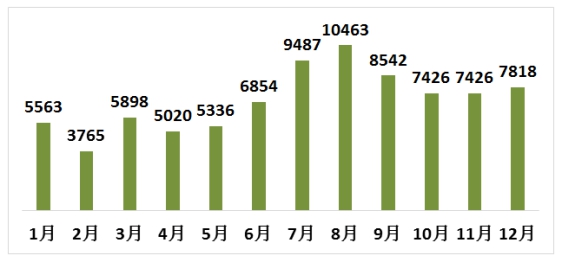 從各個月份的投訴情況看,下半年的投訴量大于上半年,投訴最多的月份主要集中在7、8、9三個月。如圖1所示。
