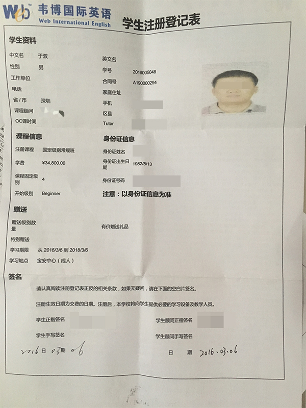 投訴對(duì)象:深圳韋博英語(yǔ)培訓(xùn)中心