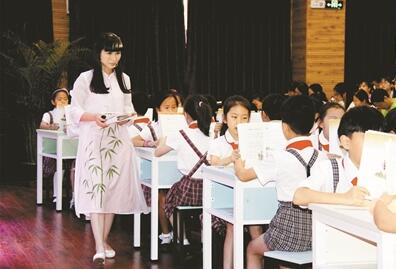 開筆禮,是中國傳統(tǒng)中對少兒開始識字習禮的一種啟蒙教育形式,被稱為人生四大禮之一,這一儀式俗稱“破蒙”。開筆禮這一有象征意義的活動每學年在怡景小學一年級新生中開展,而且是家長與孩子一同參加,讓孩子們在古韻飄香中學習尊師重教、知書達禮。去年9月28日孔子誕辰日,陳潔就與剛入讀怡景小學一年級的兒子朱彥欽一同感受了“開筆禮”的隆重場面?!皟x式特別莊重,當孩子鄭重為我端茶送水時我非常感動,這個活動太有意義了。”陳潔說,當天孩子們通過自正衣冠、禮敬先師、朱砂啟智、誦讀經典,擊鼓明志等環(huán)節(jié),身臨其境地感受了我國古代學生入學的第一課。