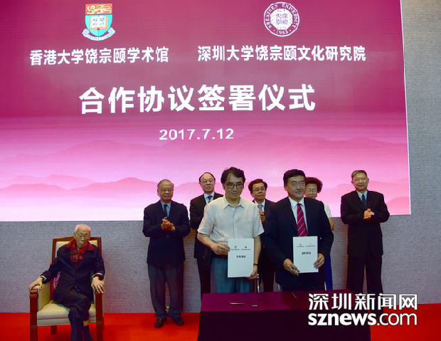 香港大學(xué)饒宗頤學(xué)術(shù)館副館長鄭煒明、深圳大學(xué)黨委副書記范志剛共同簽署合作協(xié)議。
