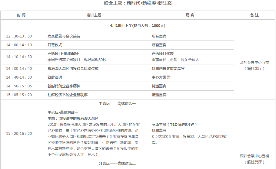 2018總裁創(chuàng)新峰會以“新時代、新秩序、新生態(tài)”為主題,秉承“全球智慧、共享發(fā)展”理念,以全球化視野的戰(zhàn)略性眼光,順勢大眾創(chuàng)業(yè)、萬眾創(chuàng)新和粵港澳大灣區(qū)的戰(zhàn)略機遇,積極推動建設新時代企業(yè)命運共同體,通過“主旨演講+高端對話+資本對接會”,圍繞科技、產業(yè)、金融,關注創(chuàng)新創(chuàng)業(yè)與創(chuàng)投,邀請政界領袖、中外知名企業(yè)總裁,500強企業(yè)商學院院長、知名投資家、智庫專家、商會協(xié)會代表、財經媒體等,共同探討新經濟背景下中國企業(yè)可持續(xù)發(fā)展的機遇與挑戰(zhàn)。