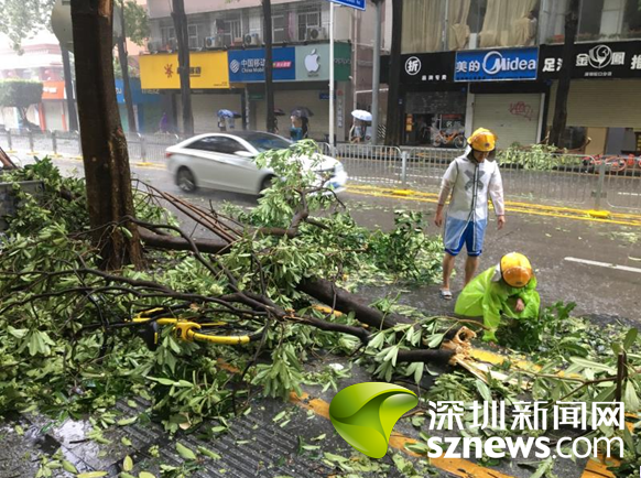 9月16日上午,蛇口街道南水社區(qū)黨委書(shū)記、婦聯(lián)主席李淑文,冒著可能被樹(shù)倒塌木砸傷的危險(xiǎn),浸泡在沒(méi)膝的雨水中幾個(gè)小時(shí)清理臺(tái)風(fēng)刮落路面的樹(shù)枝,讓來(lái)往車(chē)輛順利通行。