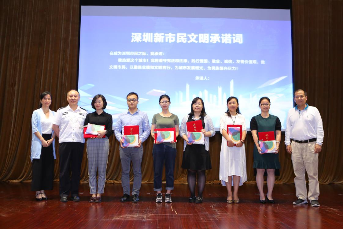 活動(dòng)現(xiàn)場(chǎng)邀請(qǐng)到了新市民代表上臺(tái)宣讀“深圳市民文明公約”,宣誓從自身做起,做文明市民,赴文明之約。深圳市公安局刑事偵查局副局長(zhǎng)胡迪、市總工會(huì)處長(zhǎng)黃迅超、市關(guān)愛(ài)辦副主任華榮為市民代表送上新版福袋。福袋是一份詳盡的“深圳說(shuō)明書(shū)”,包括《深圳家書(shū)》郵資封、《深圳市民生活指南》、《市民禮儀知識(shí)簡(jiǎn)明讀本》、文明成長(zhǎng)禮券等一系列資料,既向新市民表達(dá)歡迎,同時(shí)也引導(dǎo)新市民深度認(rèn)識(shí)深圳,培育文明行為習(xí)慣。