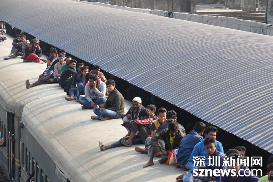 從達卡到邁門辛的火車是國內(nèi)最擁擠的線路之一,通常有數(shù)千名旅客擠在載客人數(shù)只有650人的火車里,有的抓著把手,有的蹲在門口,要不就蹲在車箱間的聯(lián)軸上或坐在車頂上。李仁奇攝