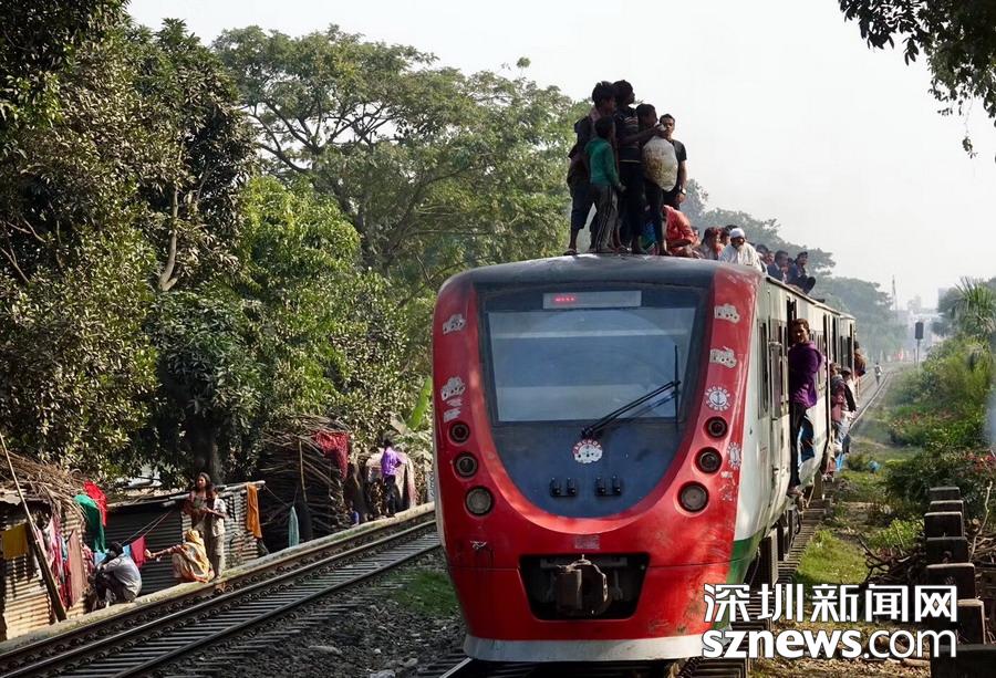 孟加拉的“瘋狂火車” 民眾為省錢蹲在兩節(jié)車廂的掛鉤處