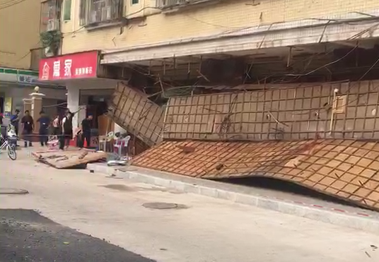 觀瀾東升小區(qū)旁一商鋪招牌塌落有人被困?回應(yīng):現(xiàn)場(chǎng)無人員被困且無傷亡