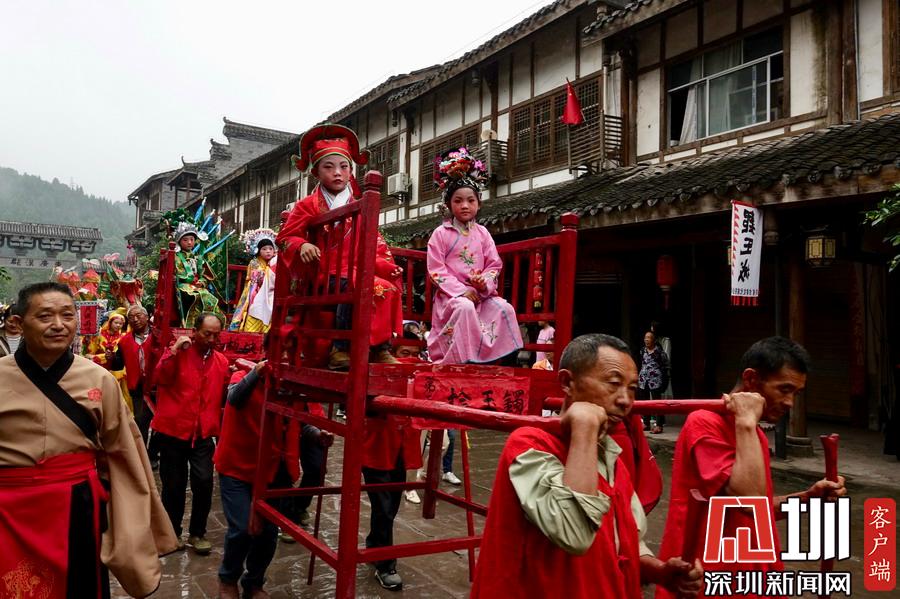 郪江古鎮(zhèn)古典風(fēng)格的迎賓儀式和民俗風(fēng)情展示。李仁奇攝