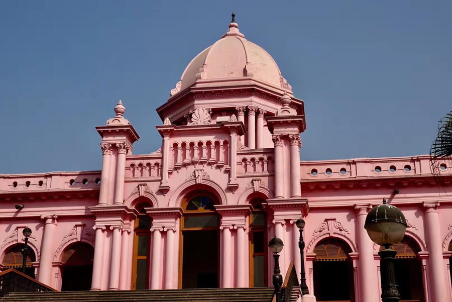 這座通體粉赤色的宮廷是游客打卡的地標(biāo)之一。李仁奇 攝