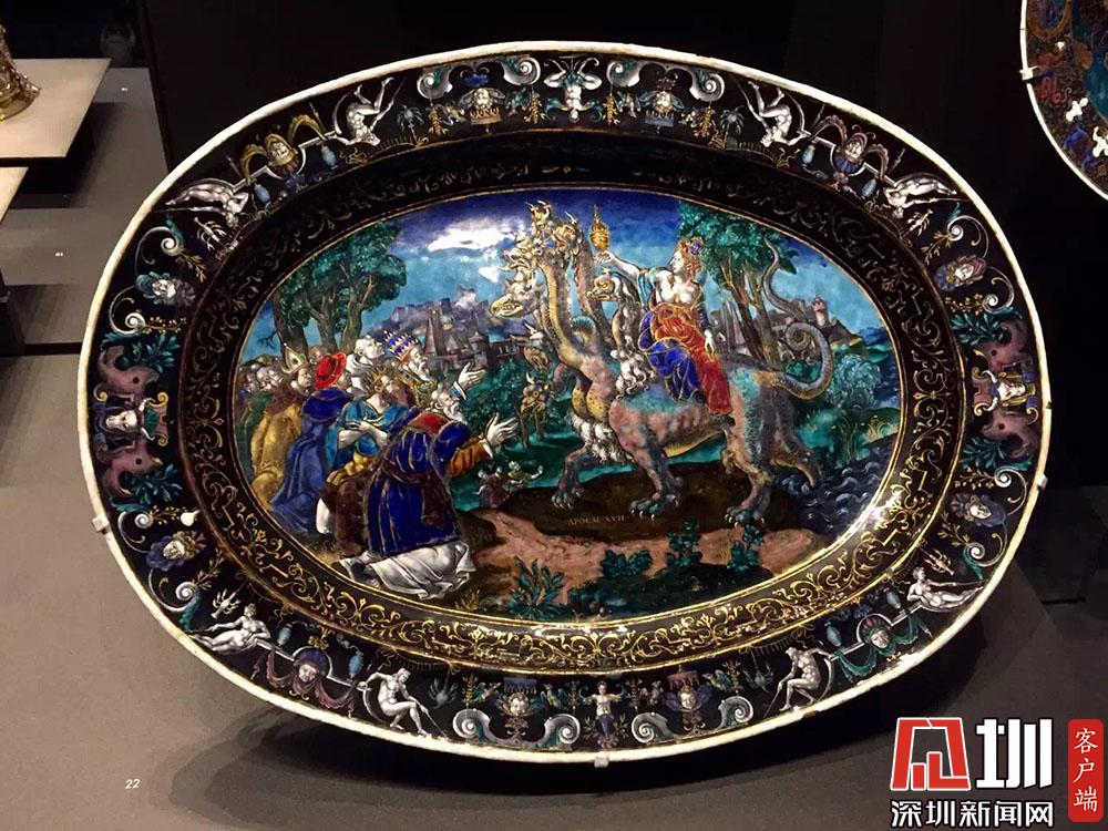 另一款水滸故事粉彩盤(pán)上,三個(gè)人物都有姓名,分別是:楊雄、解珍、阮小七。