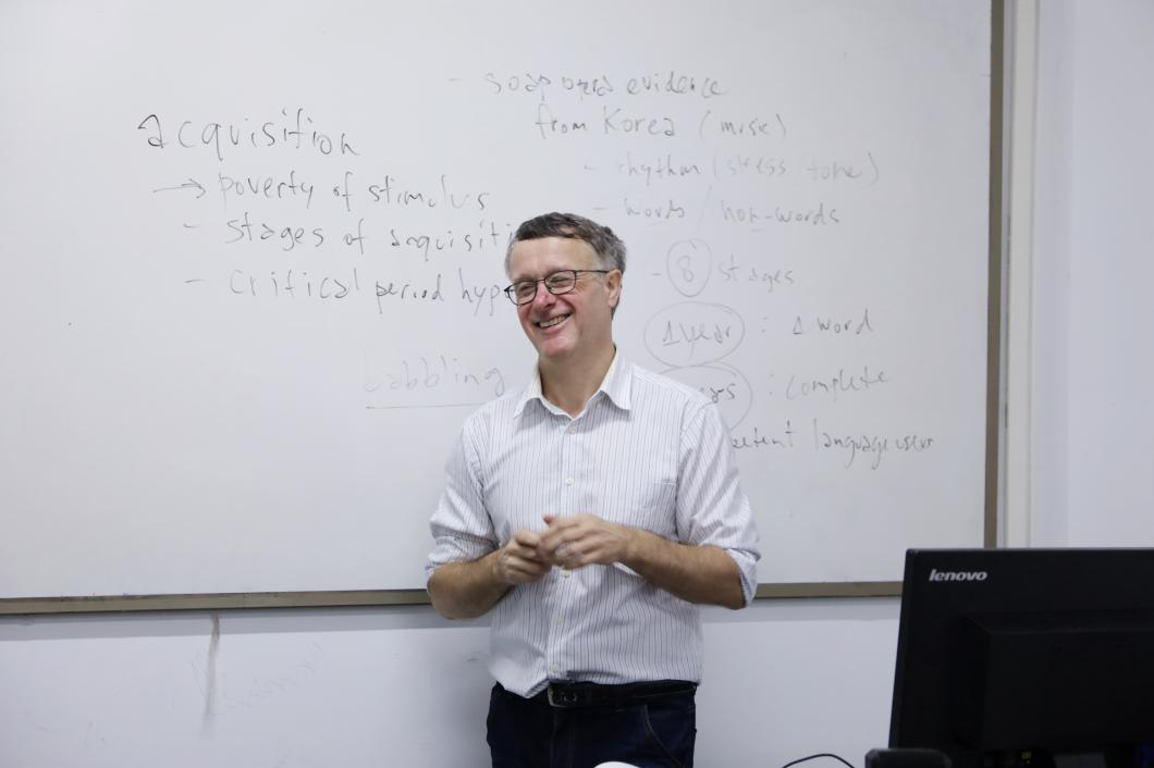 2018年,受深圳大學(xué)的邀請(qǐng),Jeroen被特聘為語(yǔ)言學(xué)教授,正式加入深圳大學(xué),承擔(dān)起英語(yǔ)的教學(xué)及研究工作。有著多年研究與教學(xué)經(jīng)驗(yàn)的Jeroen,不僅業(yè)務(wù)能力純熟,對(duì)語(yǔ)言更是有著深刻認(rèn)知。在他看來(lái),深圳的語(yǔ)言研究環(huán)境很好,可以說(shuō),深圳是研究不同語(yǔ)言融合發(fā)展的絕佳之地。