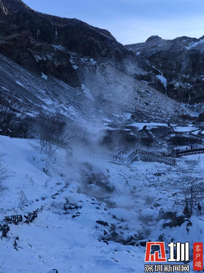 周?chē)黄y裝素裹,冰天雪地,而這里熱氣騰騰,煙霧裊裊,實(shí)在是別有一番景致。