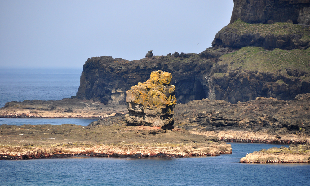 組成巨人堤道的典型石柱寬約0.45m,有的石柱高出海面6m以上,最高者達12m左右,還有大量淹沒于水下或與海面持平的石柱。李仁奇 攝