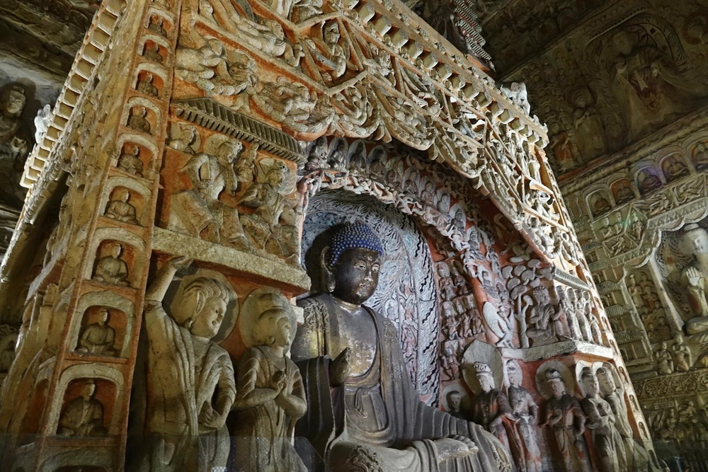 石窟依山開鑿,東西綿延約1公里。存有主要洞窟45個,大小窟龕252個,石雕造像51000余軀,還有部分北魏時期的壁畫,為中國規(guī)模最大的古代石窟群之一。李仁奇 攝