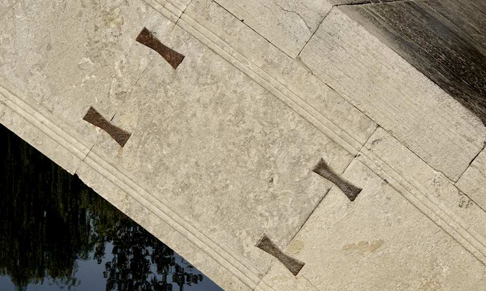 此次修繕在全面測(cè)量的基礎(chǔ)上采用原來的護(hù)拱石、鉤石、腰鐵、鐵拉桿和收分五種做法,還在橋面上下加設(shè)了二粘三油防水層(二層防水亞麻布和三層瀝青),防止漏水腐蝕現(xiàn)象發(fā)生。橋面的所有欄板、望術(shù)按早期式樣新制。李仁奇 攝