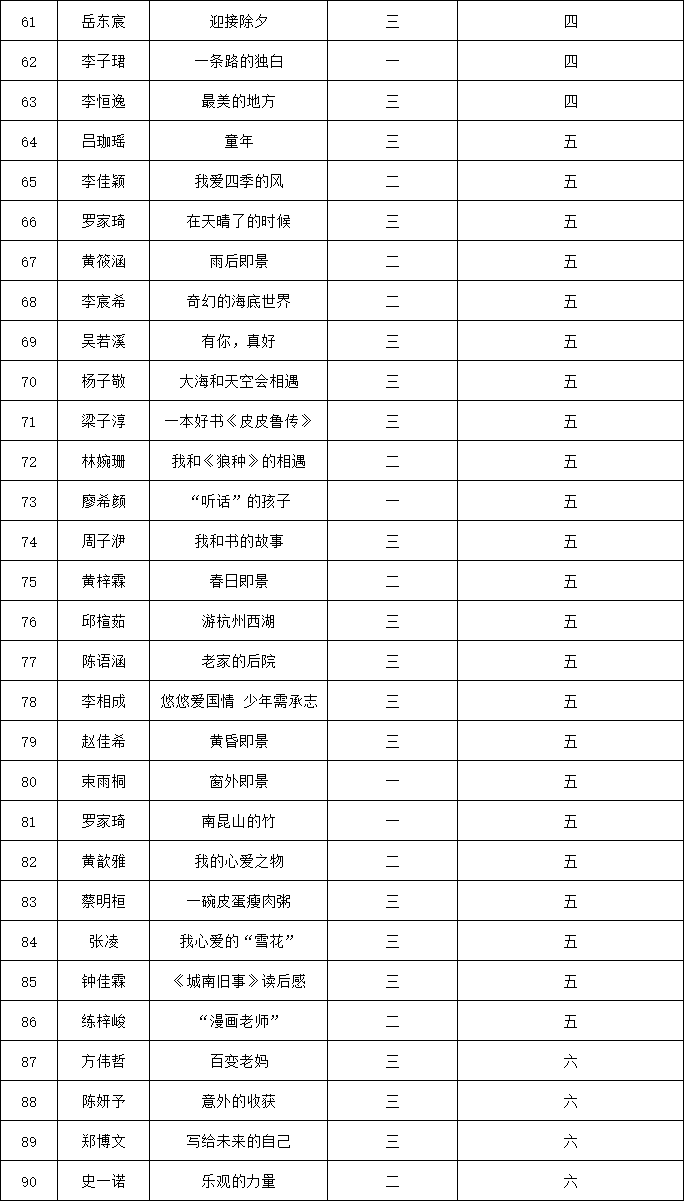 自2021年1月,活動征稿啟動以來,獲得了深圳市廣大中小學生、教師、文學愛好者的熱烈響應積極參與,吸引了深圳百余所學校的上萬人關注報名?,F(xiàn)公布福田區(qū)明德實驗學校碧海校區(qū)專場晉級復賽名單如下: