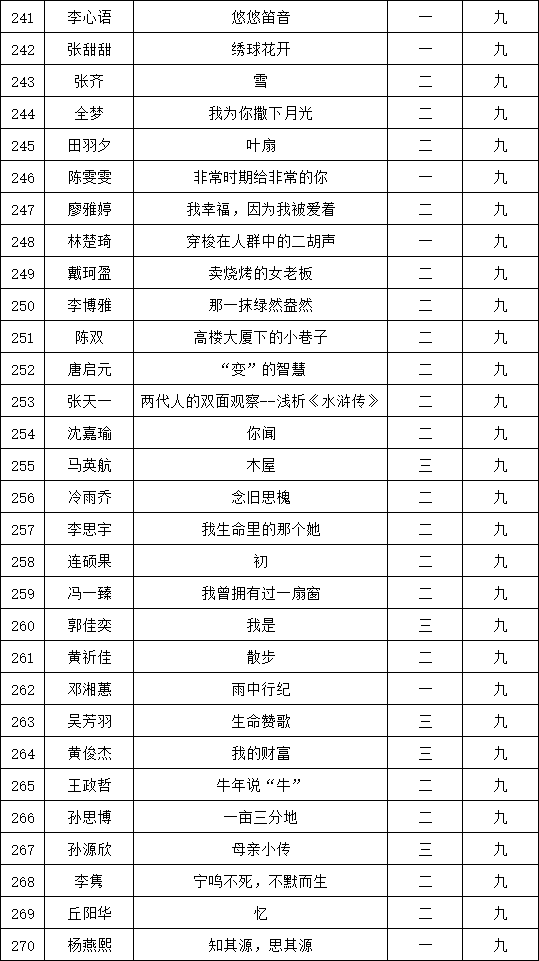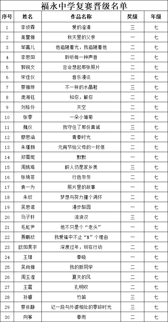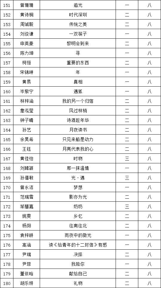 自2021年1月,活動(dòng)征稿啟動(dòng)以來(lái),獲得了深圳市廣大中小學(xué)生、教師、文學(xué)愛(ài)好者的熱烈響應(yīng)積極參與,吸引了深圳百余所學(xué)校的上萬(wàn)人關(guān)注報(bào)名。現(xiàn)公布福永中學(xué)晉級(jí)復(fù)賽名單如下: