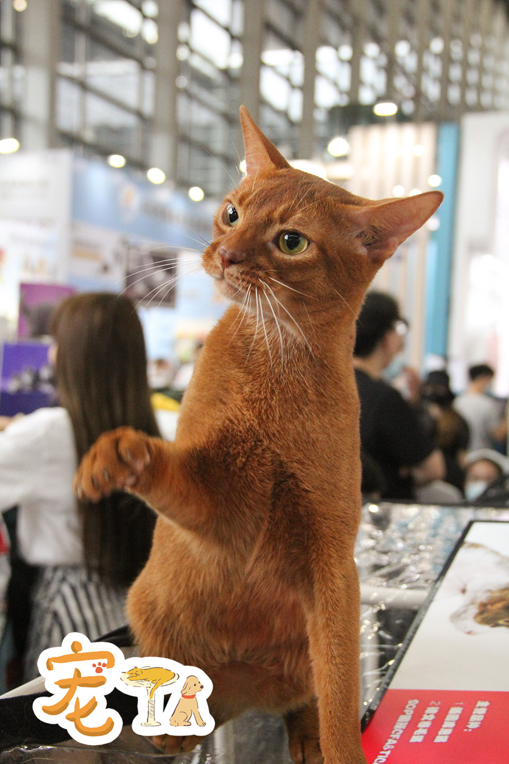 為了減少傳染,一些貓咪活體的展商要求觀眾戴著一次性手套觸摸貓咪。