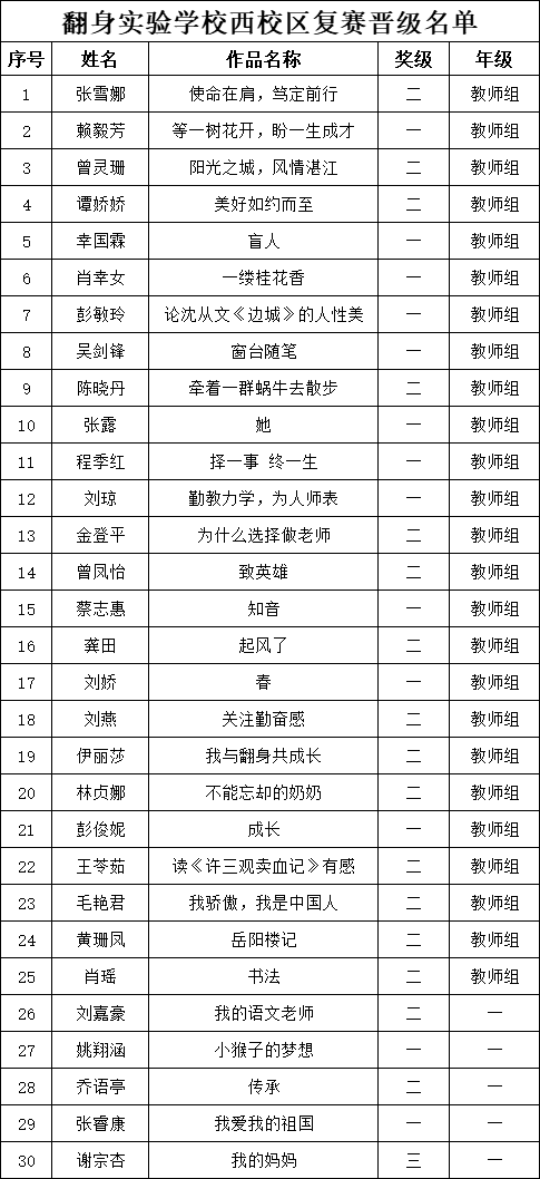 自2021年1月,活動征稿啟動以來,獲得了深圳市廣大中小學生、教師、文學愛好者的熱烈響應積極參與,吸引了深圳百余所學校的上萬人關注報名?,F(xiàn)公布翻身實驗學校西校區(qū)晉級復賽名單如下: