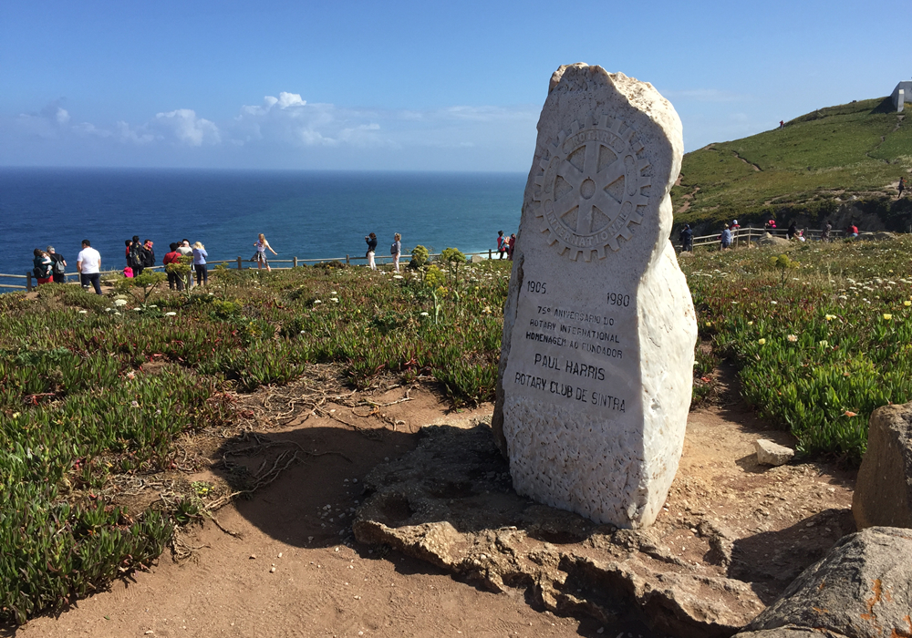 不遠(yuǎn)處刻著航海輪舵形狀的石牌是辛特拉扶輪社為紀(jì)念國(guó)際扶輪社的創(chuàng)建者——美國(guó)人保羅?哈里斯而立的。李仁奇 攝