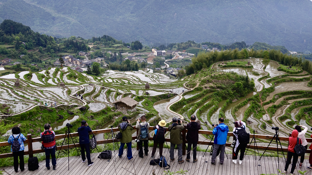 九曲云環(huán)是云和梯田最核心的景區(qū),很多游客在這等待日出。李仁奇 攝