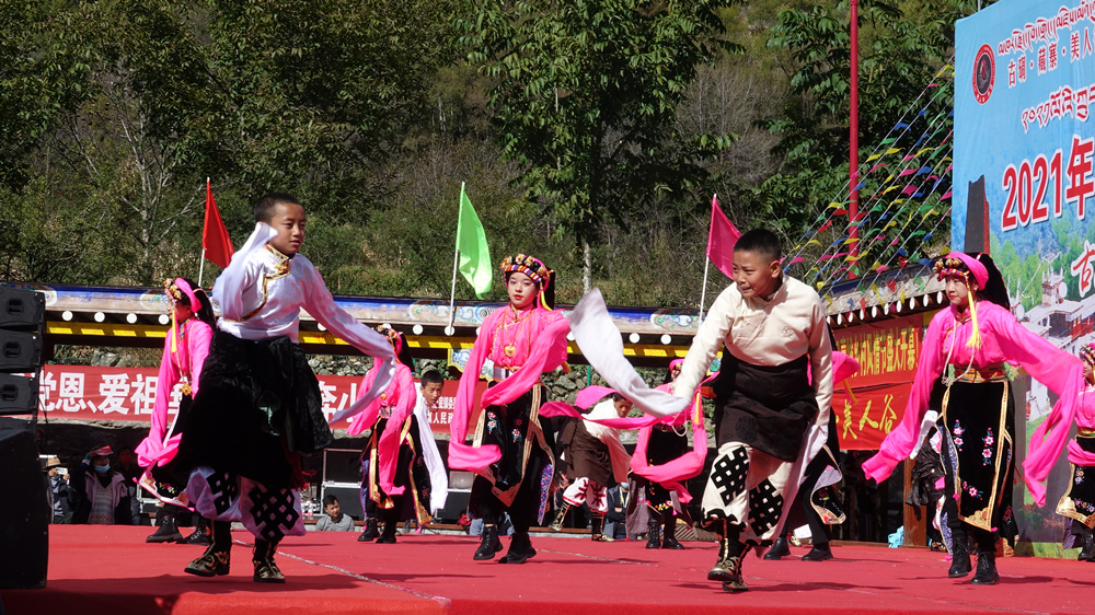 巴底小學的同學們身著嘉絨服飾,舞蹈結(jié)合丹巴傳統(tǒng)歌舞藝術(shù),充分展現(xiàn)了丹巴深厚的文化底蘊。李仁奇 攝