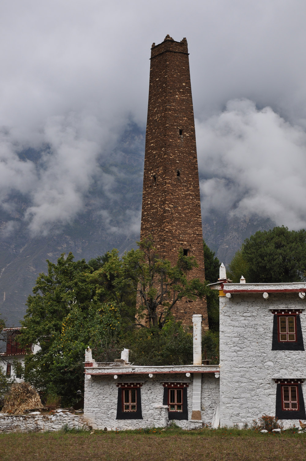 古碉為片石或石塊夾泥砌成,棱角筆直,墻面光滑,下寬上窄,一般高20余米,最高達(dá)50米,內(nèi)建樓層十余層至二十余層,每層可容納10余人。李仁奇 攝