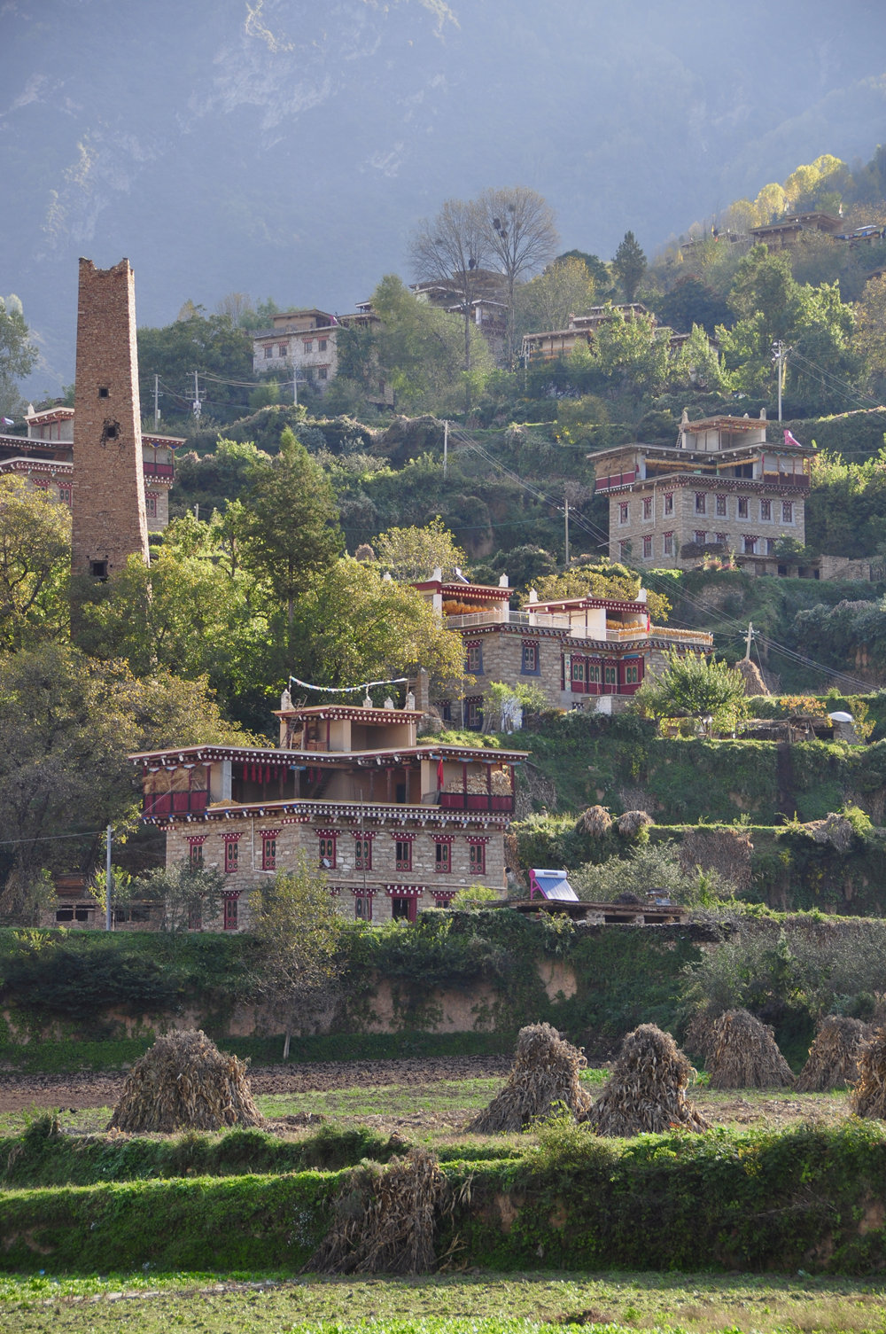 遠(yuǎn)遠(yuǎn)望去,層次分明、色彩明艷,是當(dāng)?shù)鼐用衽c大自然和諧相處的完美演繹。李仁奇 攝