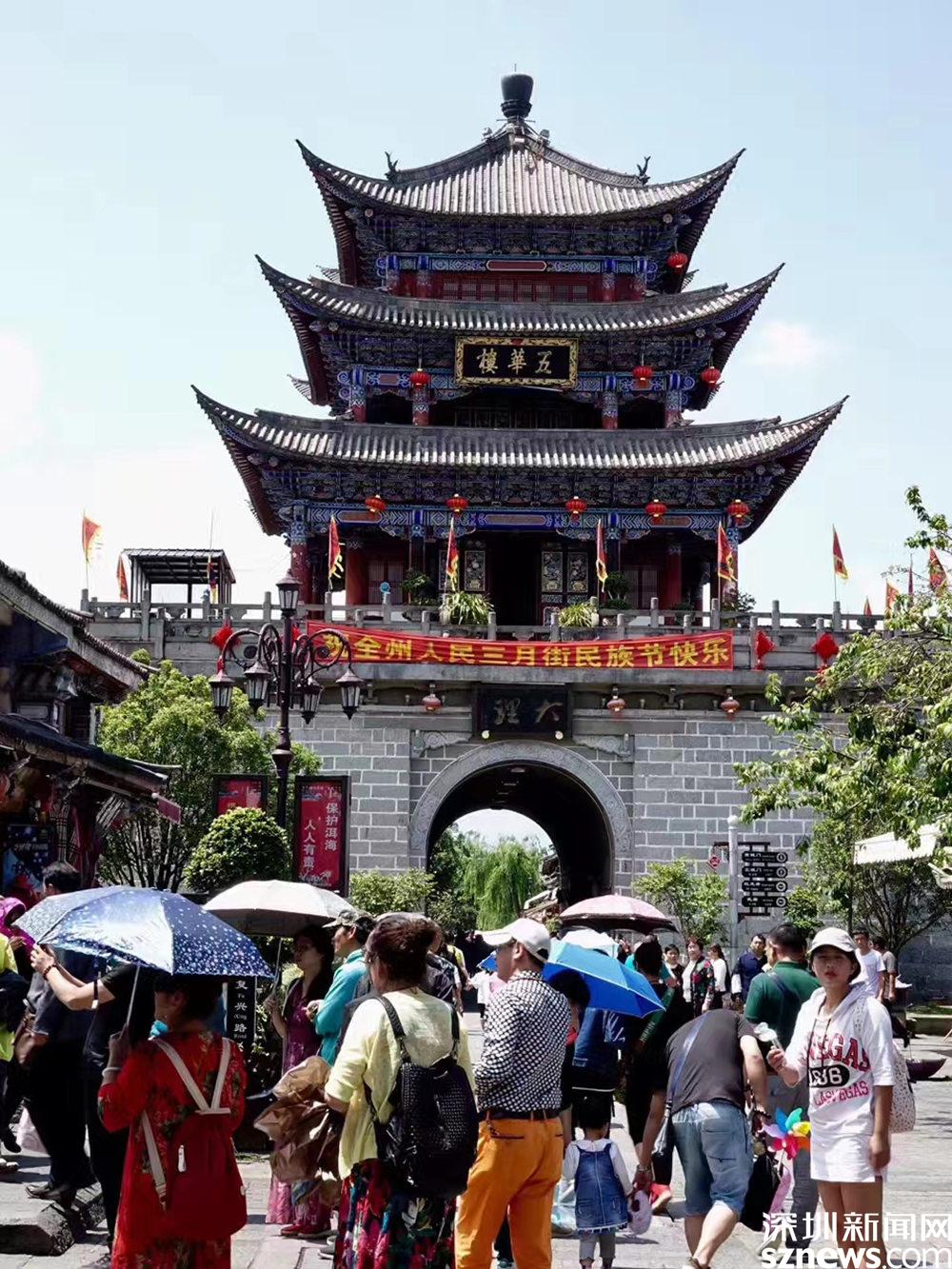 上世紀(jì)八十年代以后,大理陸續(xù)在遺留下來的300多米古城墻上重修了四座城門樓和城中心的“五華樓”,重現(xiàn)了古都風(fēng)采,引來無數(shù)游客。李仁奇 攝