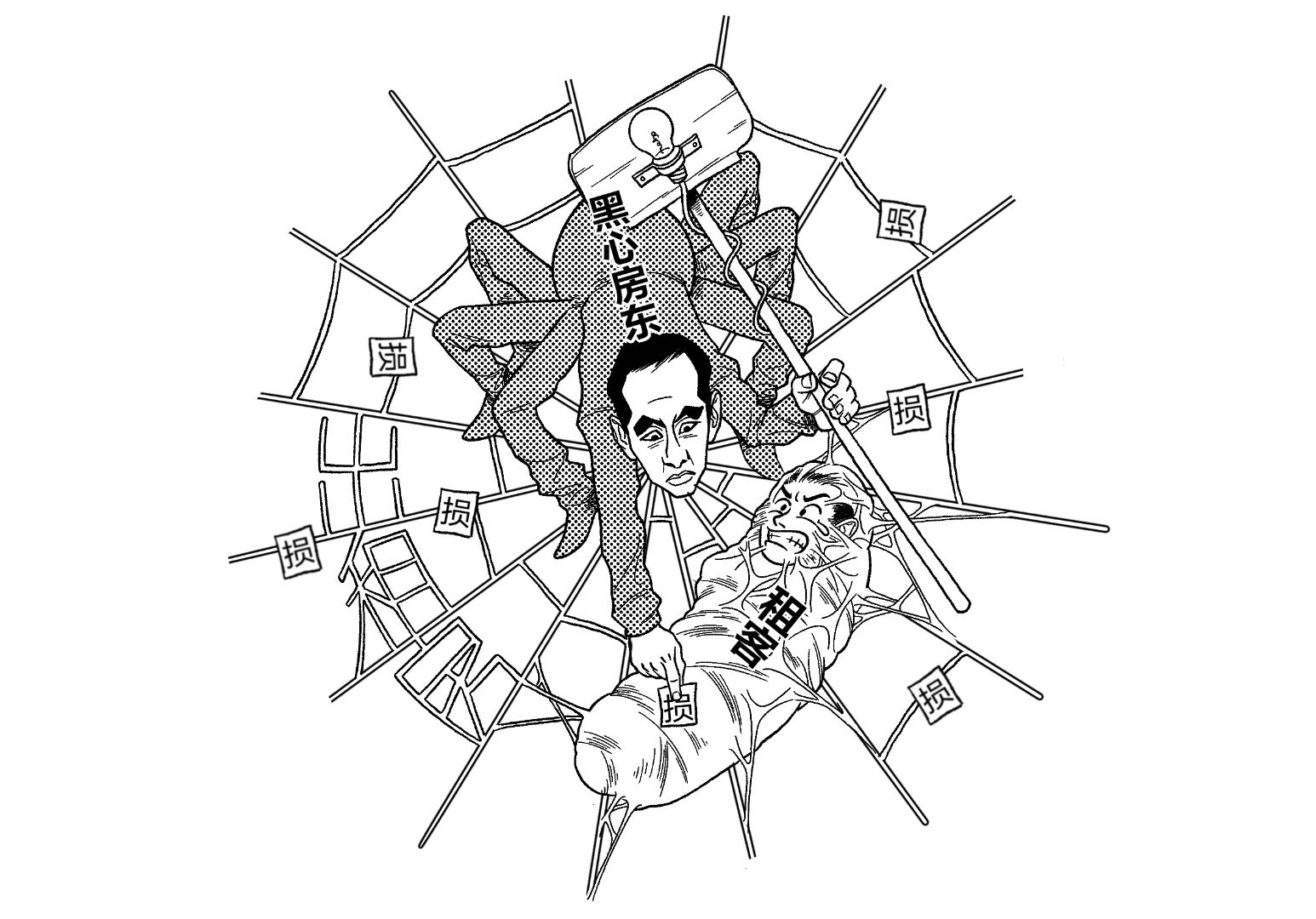 黑心房東套路深,驗房定損自提燈。克扣押金賠損耗,吃干抹凈租房人。